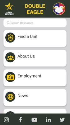The Double Eagle App is the official United States Army Reserve mobile interface. The primary purpose of the Double Eagle App is to increase Soldier knowledge and awareness by providing news, videos, information, tools and resources for every Army Reserve Soldier. The app can be used anytime, anywhere in the world to access key Army Reserve resources, find units, phone numbers, job vacancies, family support, or catch up on the latest Army Reserve news.